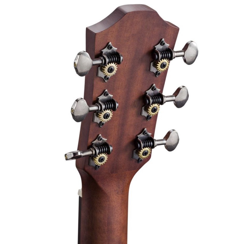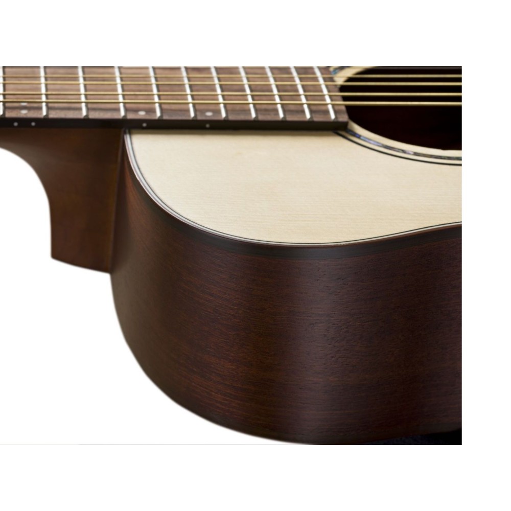 Ширина грифа у верхнего порожка — 46 мм — уже стандартного (48–49 мм). Такой гриф оценят музыканты с небольшими руками, а также те, кто переключается с электрогитары. Компактный гриф облегчает взятие сложных аккордов.