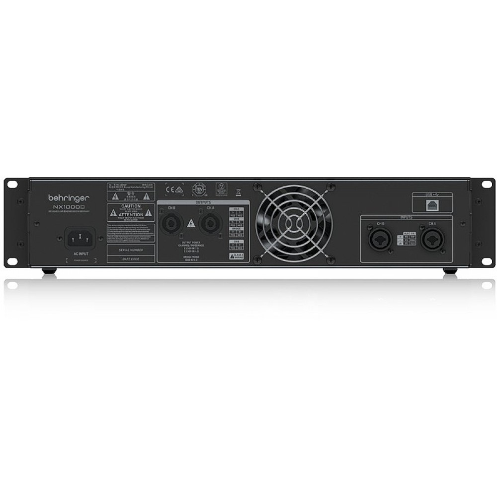 Behringer NX1000D - профессиональный 2-канальный усилитель мощности класса D с встроенной DSP секцией, которая содержит россовер с 3-мя типами фильтров (до 48 дБ/Окт.), эквалайзеры (8 параметрических, 2 динамических), динамическую обработку. Конвертер 24-бит/96кГц. LCD дисплей на передней панели позволяет установить и отрегулировать параметры прямо на усилителе, без подключения к ПК.