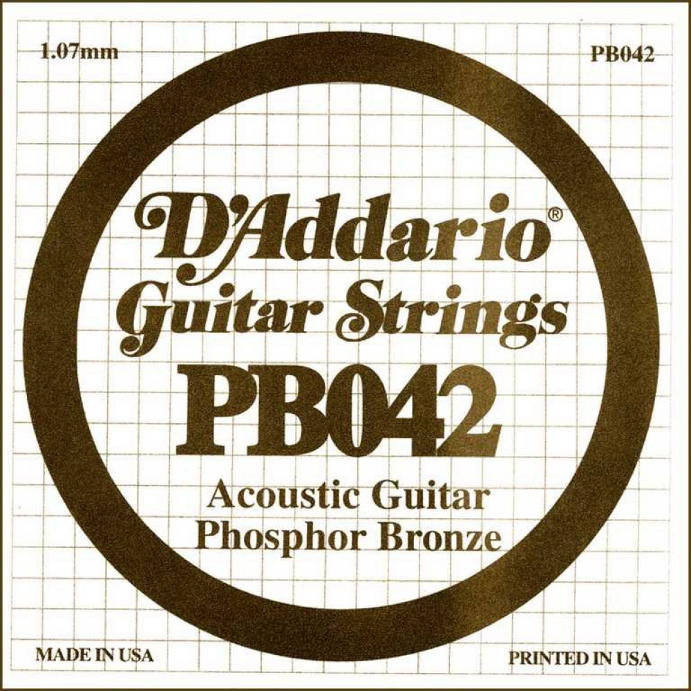 PB042 Phosphor Bronze Отдельная струна для акустической гитары, фосфорная бронза, .042, D'Addario