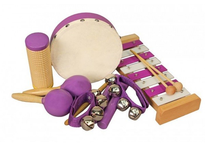 FLIGHT FPS-6V Набор перкуссии 6 предметов, В комплекте: металлофон(8 нот), гуиро, браслет с бубенчиками -2шт., маракасы- 2шт., клавесы - 2шт., тамбурин - 1 шт. Состав: дерево, металл, текстиль
