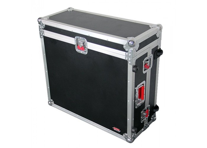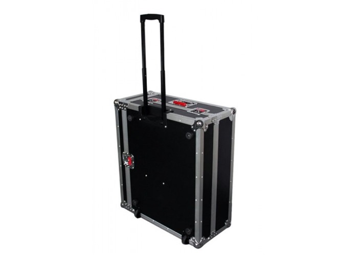 Флайт-кейсовые эксцентрик-замки и пружинная ручка для переноски с красной отделкой.