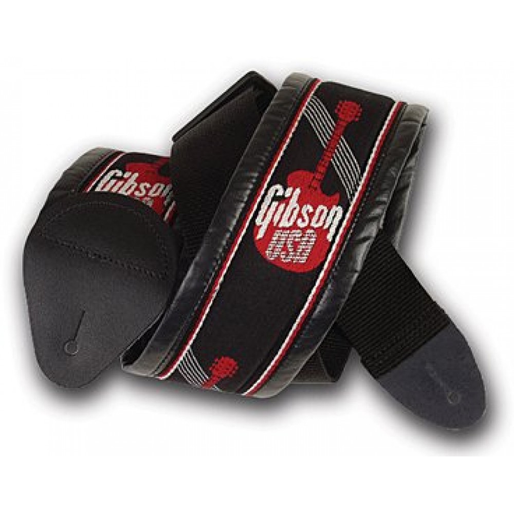 GIBSON 3" WOVEN STRAP W/ GIBSON LOGO-RED ремень для гитары с красным лого, ширина 7,6 см