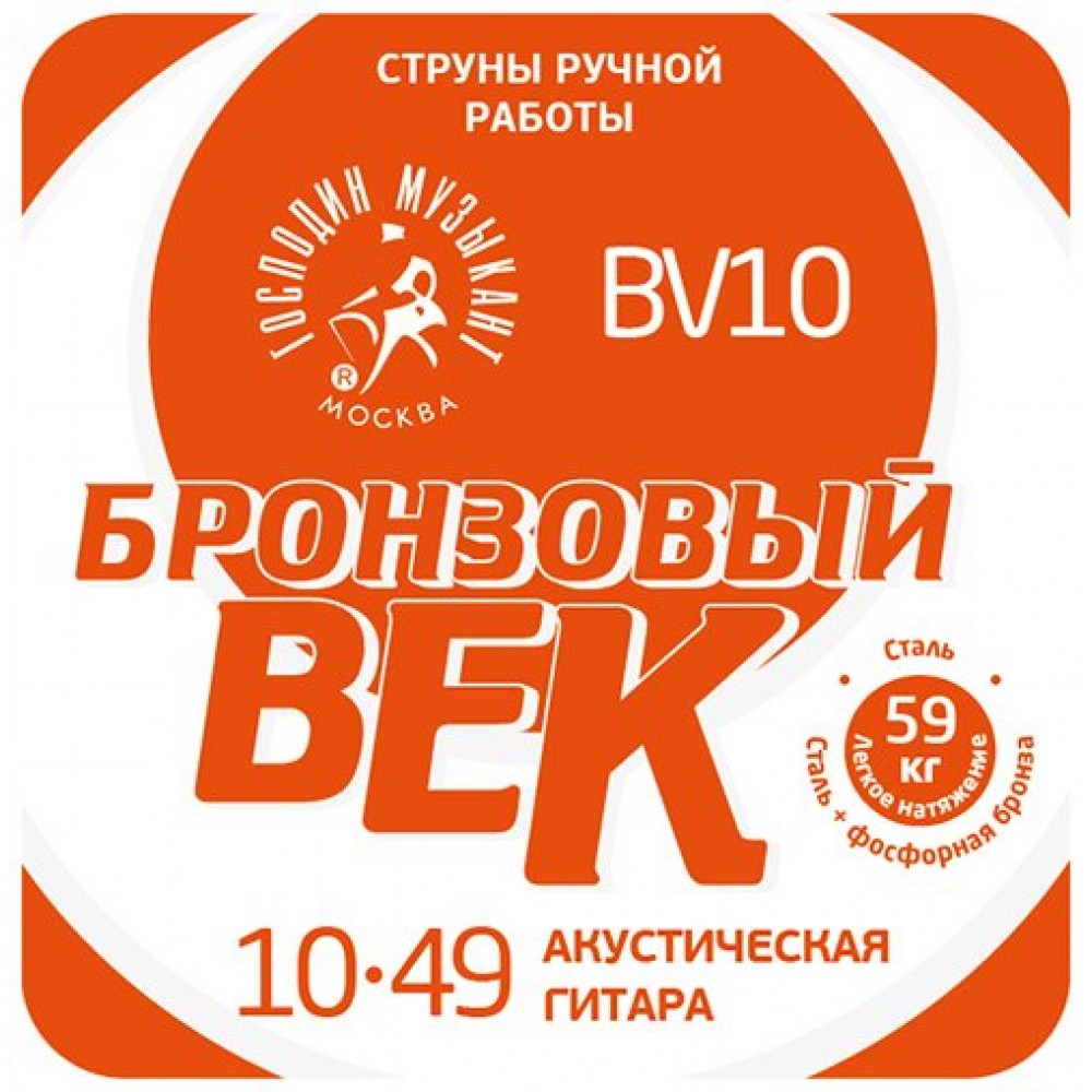 BV10 Бронзовый Век №10 Комплект струн для акустической гитары, 010-049, Господин Музыкант