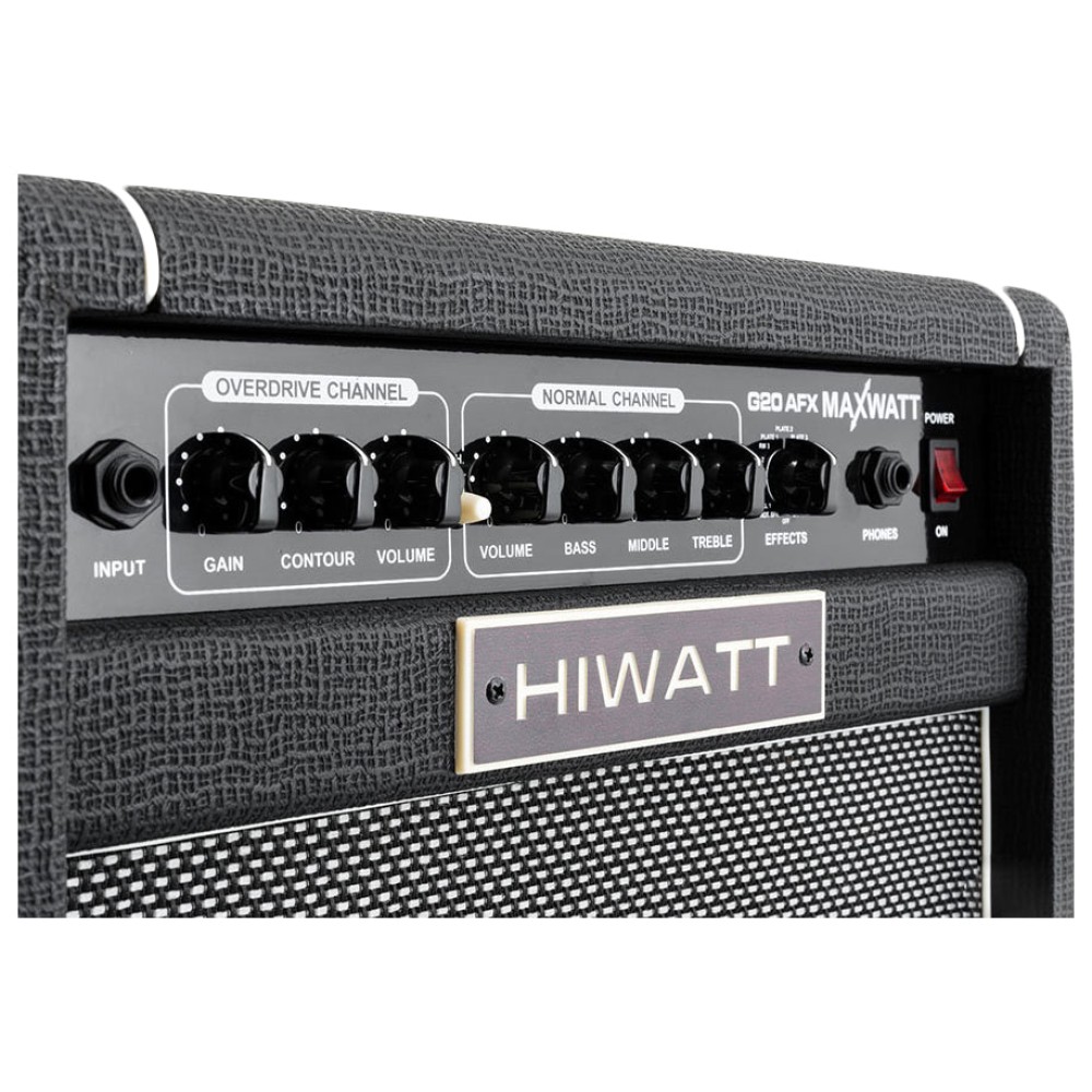 Комбо для электрогитар HIWATT-MAXWATT G20 AFX 20Вт, динамик 8”, 3-х полосный эквалайзер, гит. вход (Clean/Overdrive), регулировка (Contour Control) (баланс частот), блок цифровых эффектов. Вход для CD-плеера, вход для ножного контроллера, выход на наушники, выход на внешний динамик