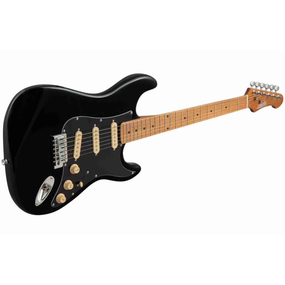 JET JS-200 BK – электрогитара в классическом форм-факторе Stratocaster с традиционной конфигурацией звукоснимателей SSS. Инструмент сочетает проверенный временем дизайн в строгом черном цвете с современными технологиями обработки древесины. Гриф Modern C из канадского печеного клена обеспечивает исключительную стабильность и комфорт при игре в различных стилях, а три сингла Ceramic дарят яркое и выразительное звучание, характерное для классических стратокастеров. Тремоло-система добавляет игре динамичности и позволяет создавать выразительные вибрато.