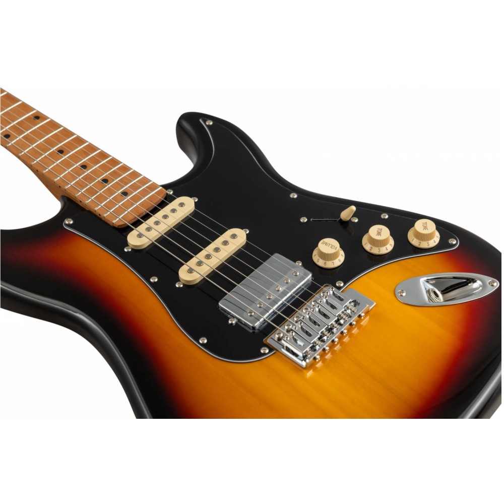 JET JS-250 SB – электрогитара в классическом форм-факторе Stratocaster с универсальной конфигурацией звукоснимателей HSS. Модель сочетает в себе традиционный страт-дизайн в оформлении Sunburst с современными техническими решениями. Комбинация хамбакера и двух синглов Ceramic предоставляет широкий диапазон звучания – от мощного и плотного до чистого и прозрачного. Гриф Modern C из канадского печеного клена обеспечивает комфорт и стабильность при игре, а тремоло-система добавляет выразительности и динамики.