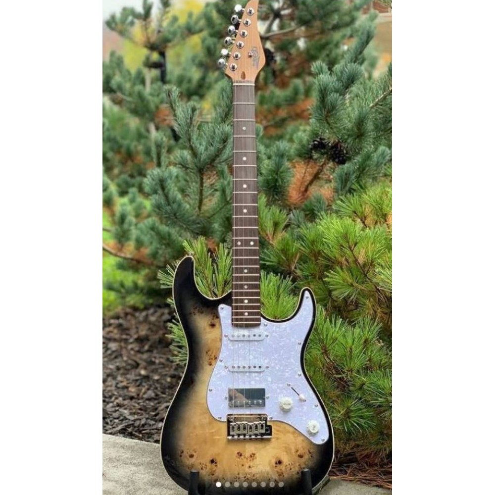 JET JS-450Q TBR - Электрогитара в стиле Stratocaster с верхней декой из капового тополя создана для музыкантов, ценящих эксклюзивный дизайн и универсальное звучание. Инструмент сочетает в себе премиальные материалы и классическую форму, предлагая сбалансированное решение для различных музыкальных стилей. Гитара отличается выразительным тембром с конфигурацией звукоснимателей HSS, что обеспечивает широкий диапазон звуковых возможностей для студийной работы и живых выступлений.