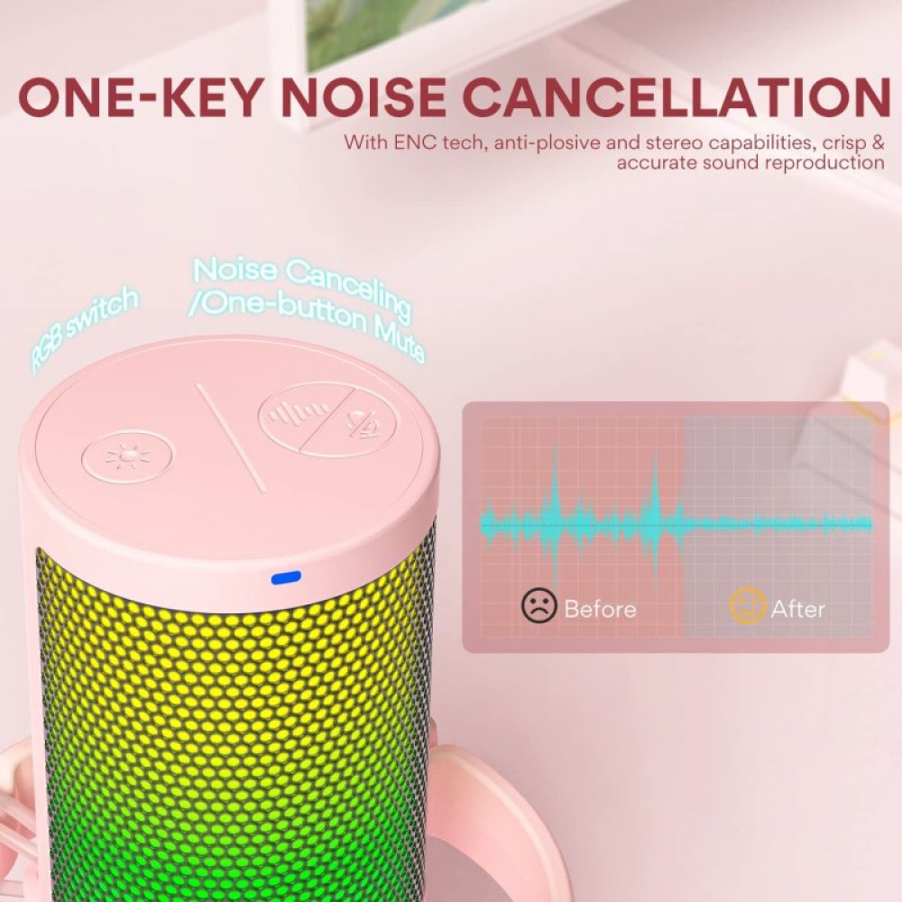 А благодаря встроенной в микрофон функции шумоподавления окружающих звуков ENC - в эфир не попадут звуки с улицы или топот соседей сверху. Подключите микрофон к компьютеру по USB, прямо на корпусе устройства отрегулируйте уровень шумоподавления, выберите один из девяти режимов RGB подсветки и будьте уверены - ваши собеседники по достоинству оценят то как вы звучите.