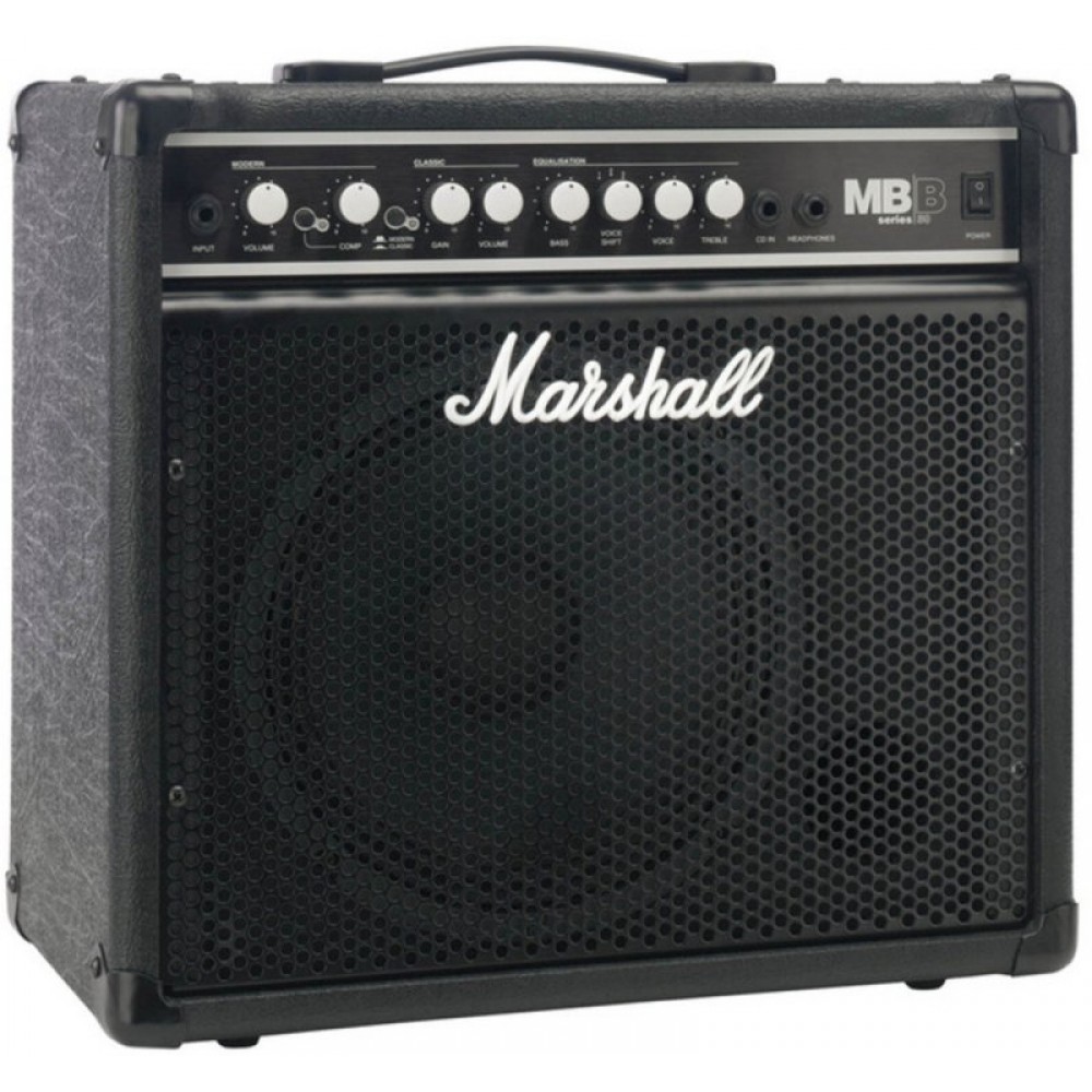MARSHALL MB30 30W BASS COMBO комбо басовый, 30 Вт, 2 канала (modern и classic), 4-полосный эквалайзер, встроенный компрессор, вход для CD/mp3, линейный выход, выход для наушников, последовательная петля для внешних эффектов (send/return), разъъём для подключения ножного переключателя каналов PEDL-10008 (футсвитч приобретается отдельно).