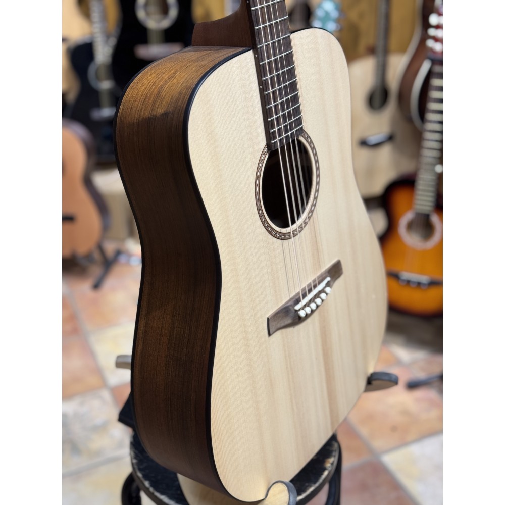 Откройте для себя звучание профессиональной акустической гитары в классическом корпусе дредноут, полностью изготовленной из массива натуральной древесины. Инструмент собран в России с соблюдением высоких стандартов качества — выбор музыкантов, ценящих мощный тембр, надёжность и эстетику ручной работы.