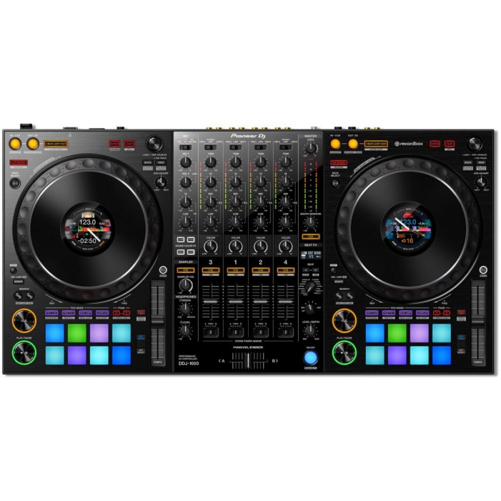 Эффективно используйте новые улучшенные функции программы rekordbox dj с нашим специальным 4-канальным dj контроллером. Профессиональное размещением элементов управления этого контроллера, унаследованное от флагманских моделей NXS2 делает его компактным решением для выступлений на вечеринках и мероприятиях. Абсолютно новые ЖК экраны высокого разрешения, контроллера DDJ-1000 позволяют интуитивно следить за декой.