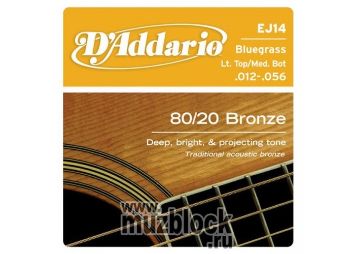 EJ14 Bronze 80/20 Струны для акустической гитары, 12-56, Light Top/Medium Bottom/Bluegrass D'Addario