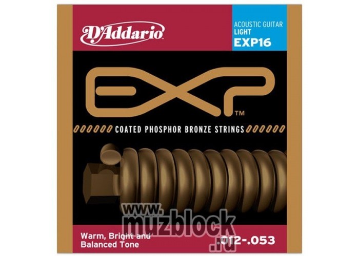 EXP16 Coated Phosphor Bronze Комплект струн для акустической гитары, Light, 12-53, D'Addario