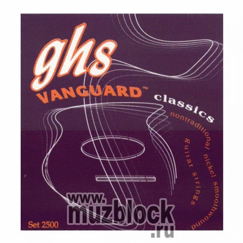 GHS 2500 - нейлоновые струны для классической (шестиструнной) гитары с гладкой никелированной обмоткой, сильное натяжение (Hard Tension), серия Vanguard ClassicsВ основе GHS 2500 - высококачественный нейлон, а нетипичная для классических гитарных струн гладкая обмотка из никелированного сплава предотвращает чрезмерное трение пальцев о поверхность и потерю чистого звучания.