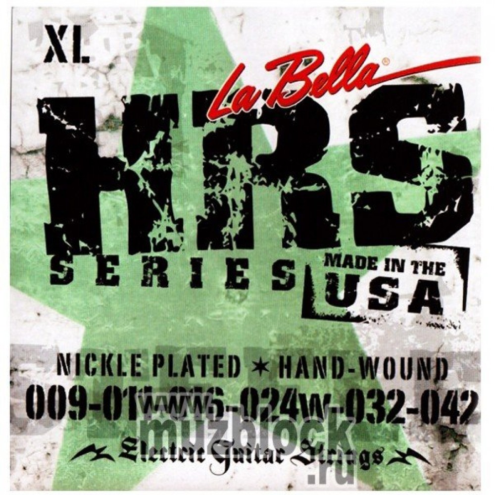 HRS-XL Hard Rockin Steel Extra Light Комплект струн для электрогитары. Верхние струны - сталь, басовые струны - стальной керн в никелированной оплетке. Обладают очень ярким и продолжительным звуком. 9-11-16-24w-32-42 La Bella США