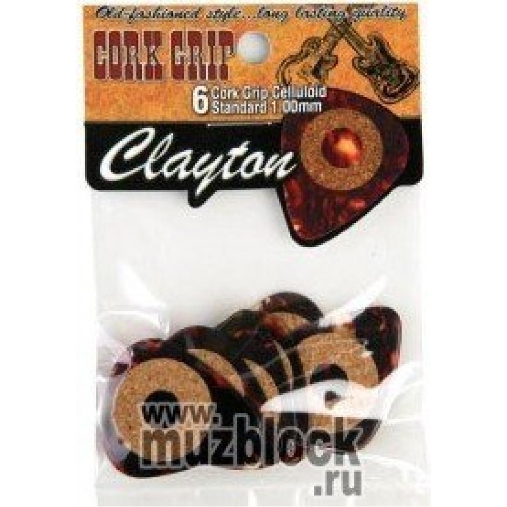 Набор медиаторов CLAYTON CORK GRIP CG80/6 - серия "Пробковый захват", стандартная форма медиатора, пробковая вставка, 6 штук, толщина 0.80мм