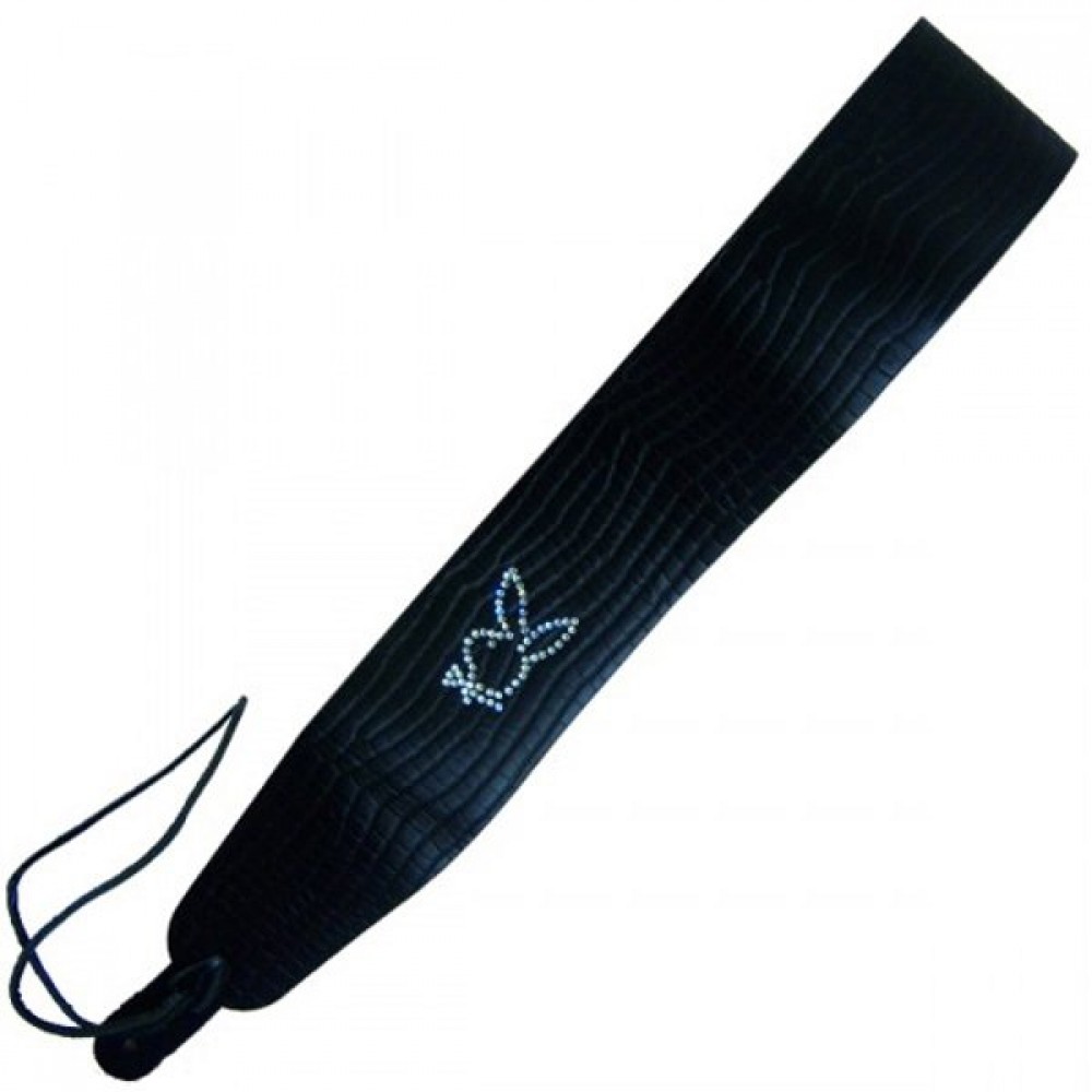 CLAYTON PLC3B - кожаный гитарный ремень (2 pin), ширина - 8,9 см, тиснение под "крокодил", серия PLAYBOY Shimmer, украшение - зайчик из кристаллов Swarovski цвет - черный
