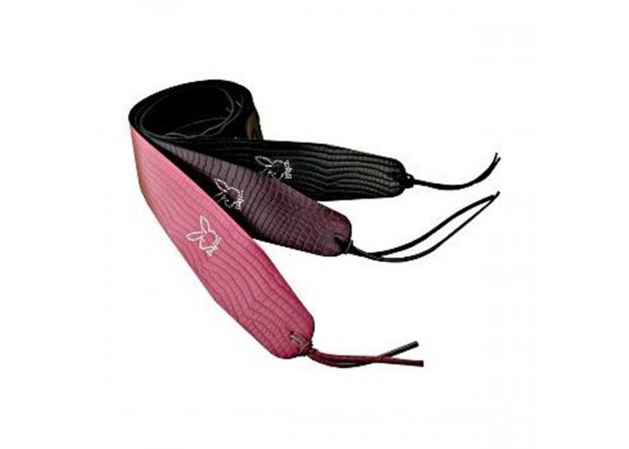 CLAYTON PLC3P - кожаный гитарный ремень (2 pin), ширина - 8,9 см, тиснение под "крокодил", серия PLAYBOY Shimmer, украшение - зайчик из кристаллов Swarovski цвет - розовый
