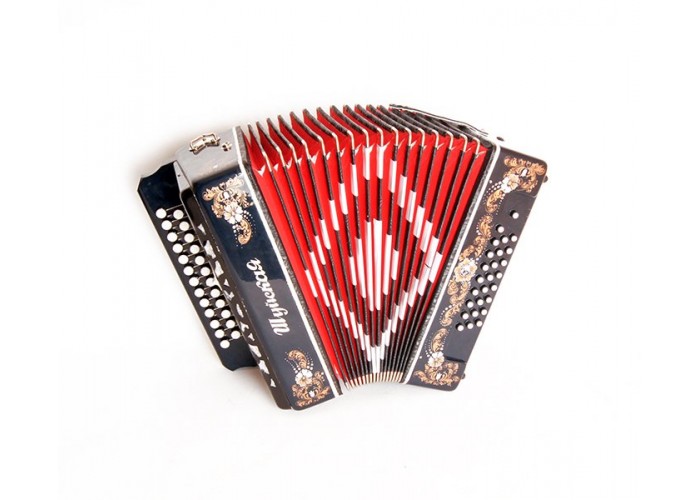 Трехголосая гармонь, звукоряд основан на неполной хроматической гамме.